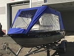 Ходовой тент с панорамным обзором для вашей лодки. Прозрачная передняя дверь, боковые капитанские окна и задняя дверь с окном обеспечивают круговой обзор и доступ свежего воздуха.